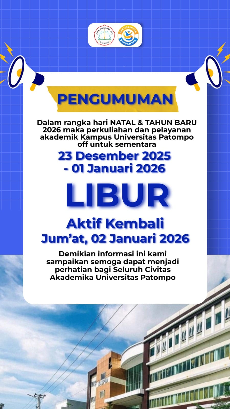 Universitas Patompo — perguruan tinggi swasta dikelola Yayasan Pembangunan Indonesia Makassar. Berdasarkan Surat Keputusan Menteri Pendidikan Kebudayaan Riset dan Teknologi RI No. 422/E/O/2022 Tanggal 10 Juni 2022 berkedudukan di Kota Makassar Provinsi Sulawesi Selatan.